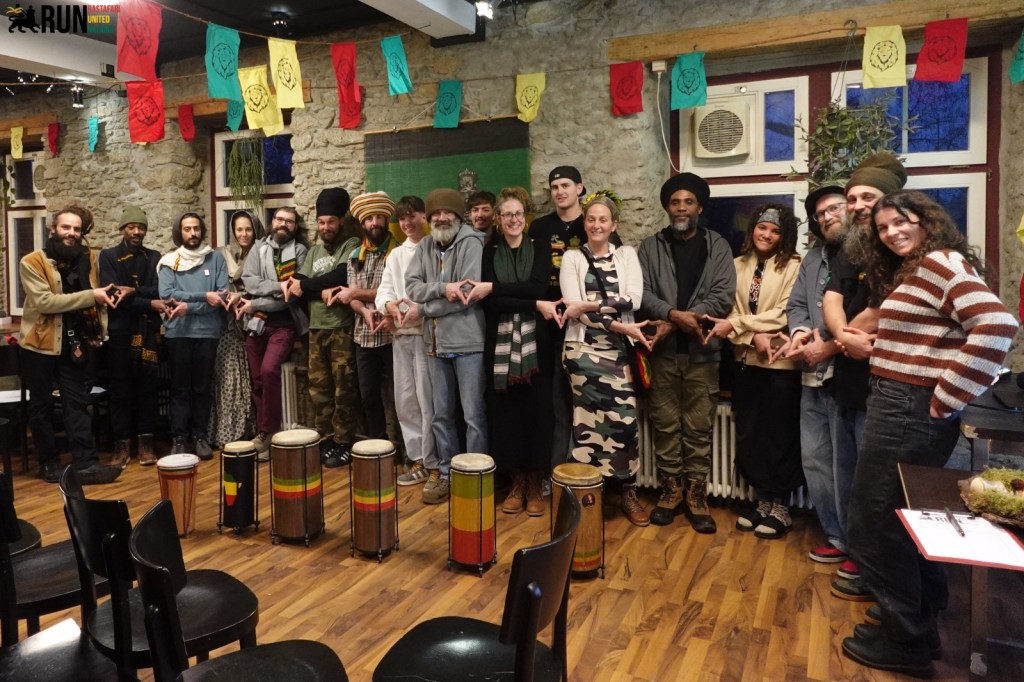 InI started with a few Nyahbinghi Chants, unfortunately, the audio didn’t work and the members online couldn’t hear InI… About 20 people gathered in Lenzburg. InI meet Bredda Riccardo from IT/ Ticino. Some of the members came by train for 3 hours or some drove over 5 hours to reach the gathering.